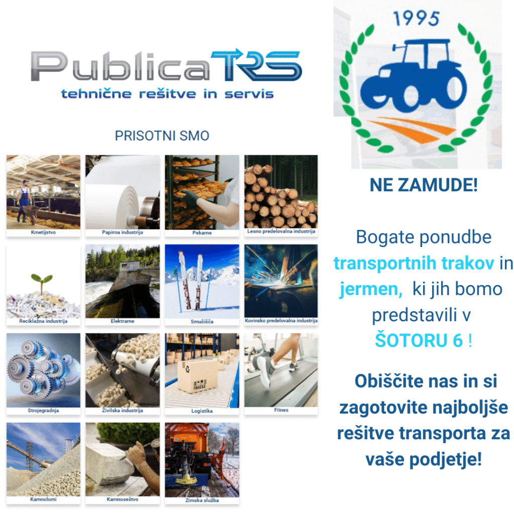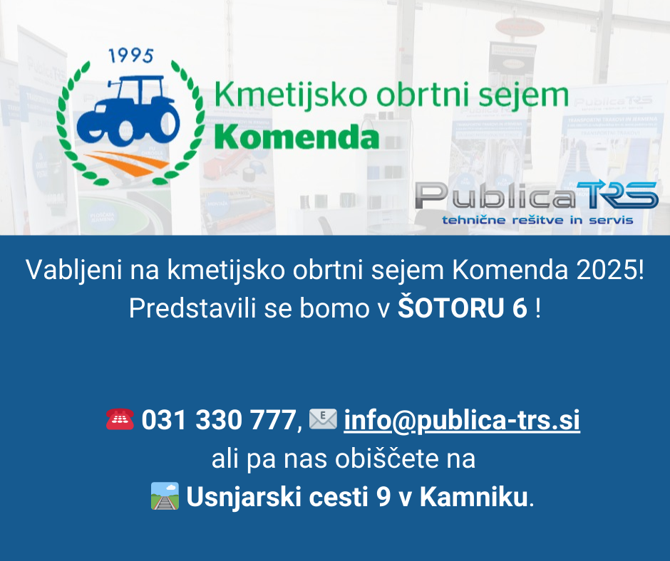 Vabljeni na 30. jesenski kmetijsko-obrtni sejem Komenda, kjer bomo predstavili široko ponudbo transportnih trakov in jermen za kmetijstvo, kmetijske stroje in priključke ter za obiranje, predelavo in pakiranje kmetijskih pridelkov in izdelkov. Obiščite nas v šotoru 6 od petka, 3. oktobra, do nedelje, 5. oktobra 2025.